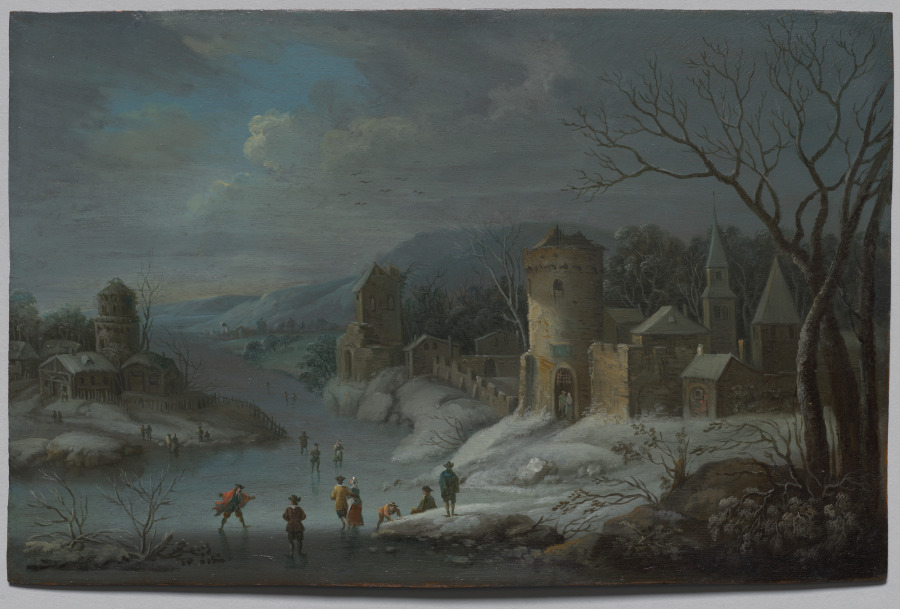 A number of scholars have questioned the attribution because Griffier did not generally paint on copper and primarily painted hunting scenes. It may be based on a print, although the source has yet to be identified.