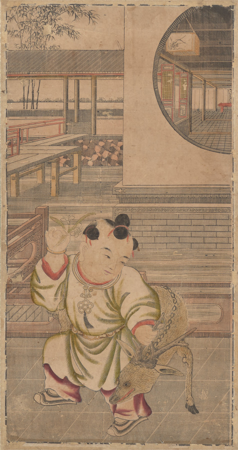 Hanging scroll; polychrome woodblock print; ink and color on paper
