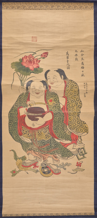 Hanging scroll; polychrome woodblock print; ink and color on paper