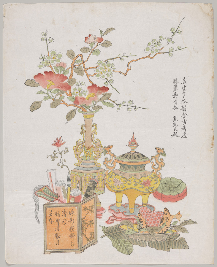 Plum and Camellia in a Bronze Vase by — VisualArtsDB