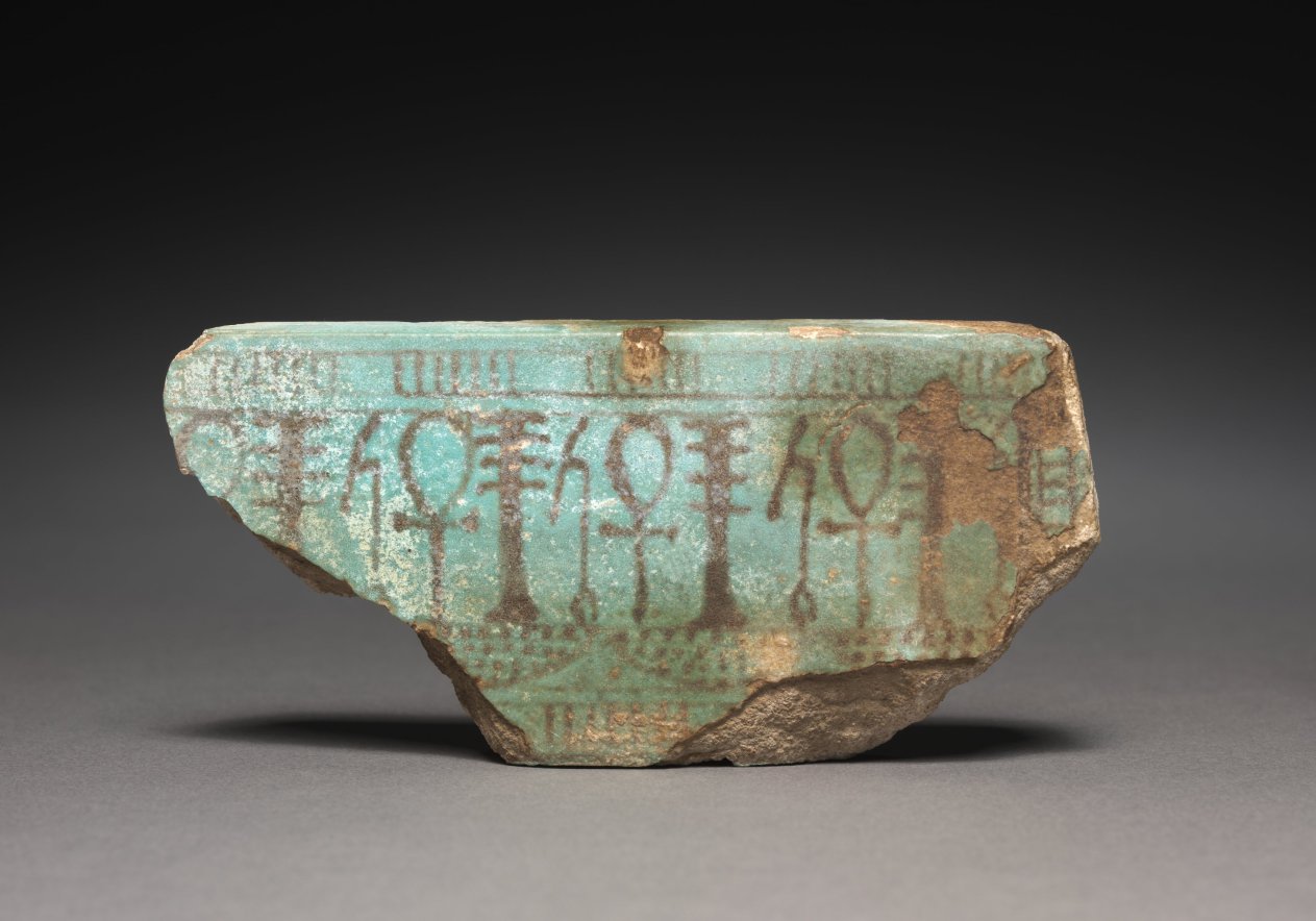 turquoise faience with purple-black painted decoration