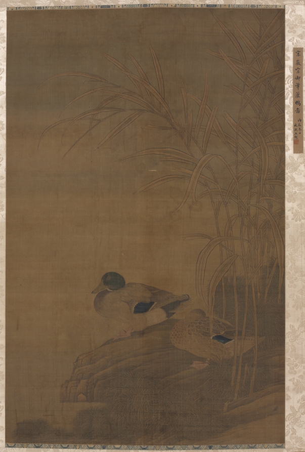 The artist realistically represented that the Mandarin duck is a sexually dimorphic species, meaning males and females differ in appearance.