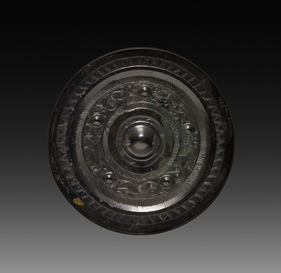 Mirror with Concentric Circles and Auspicious Animals by — VisualArtsDB