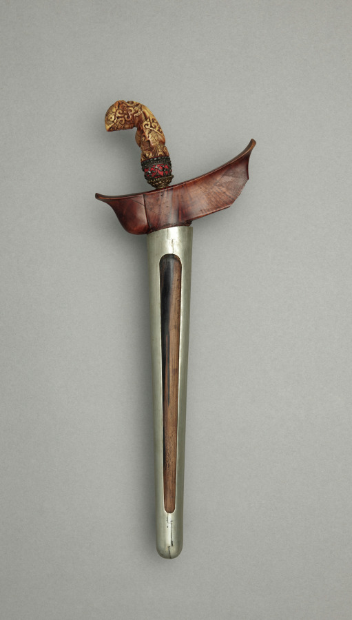 Blade: metal; handle: ivory with silver mounting; scabbard: wood and silver