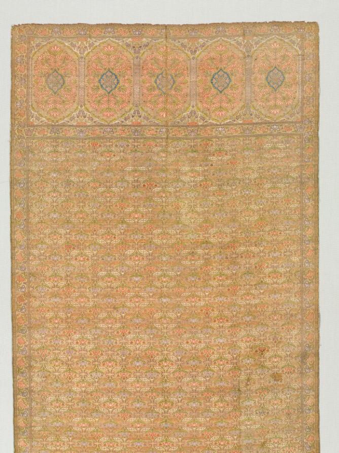Sash with floral field and end panels on a gold ground by — VisualArtsDB