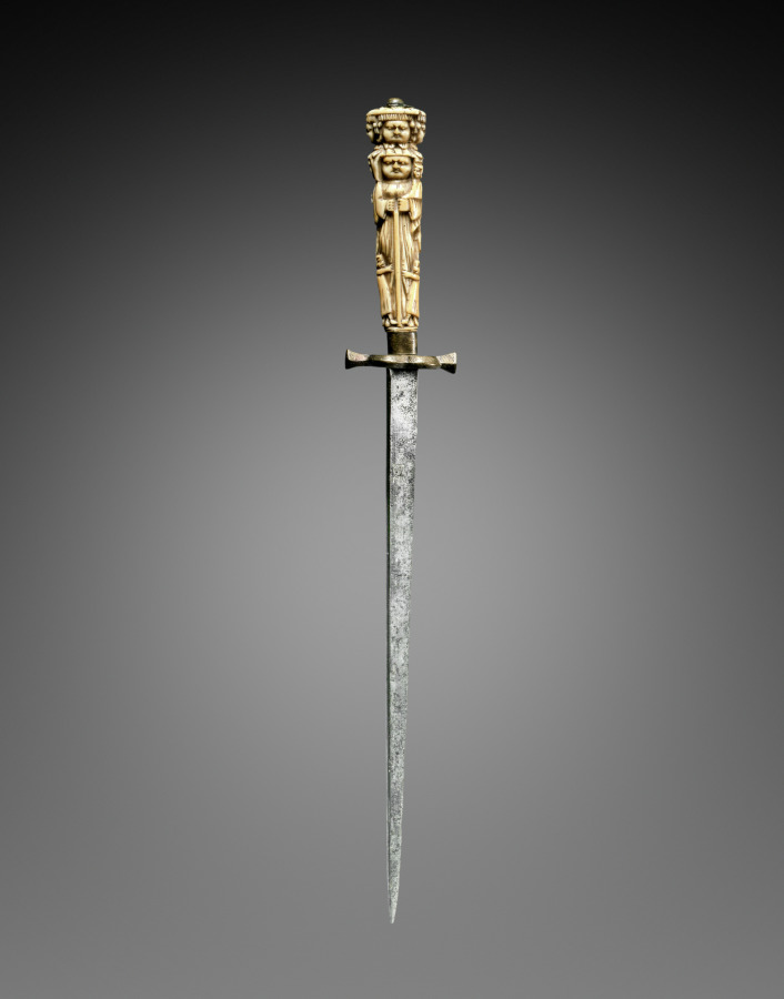 Stiletto with Grip Fashioned as Figures of Charity, Justice, and Hope by — VisualArtsDB