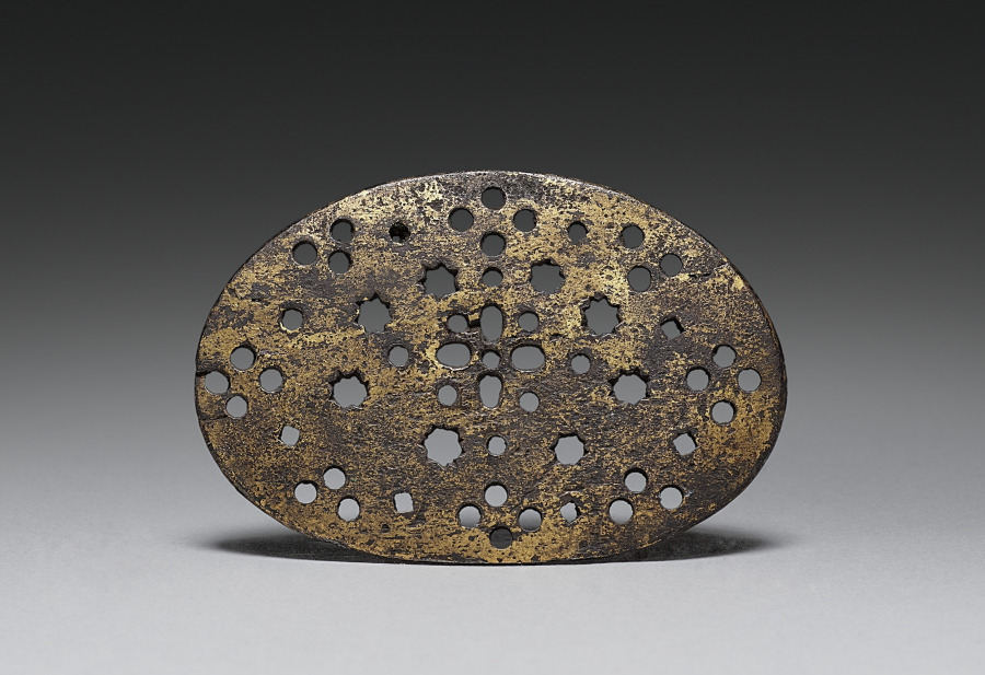 Gilded metal pierced with a pattern of stars and circles