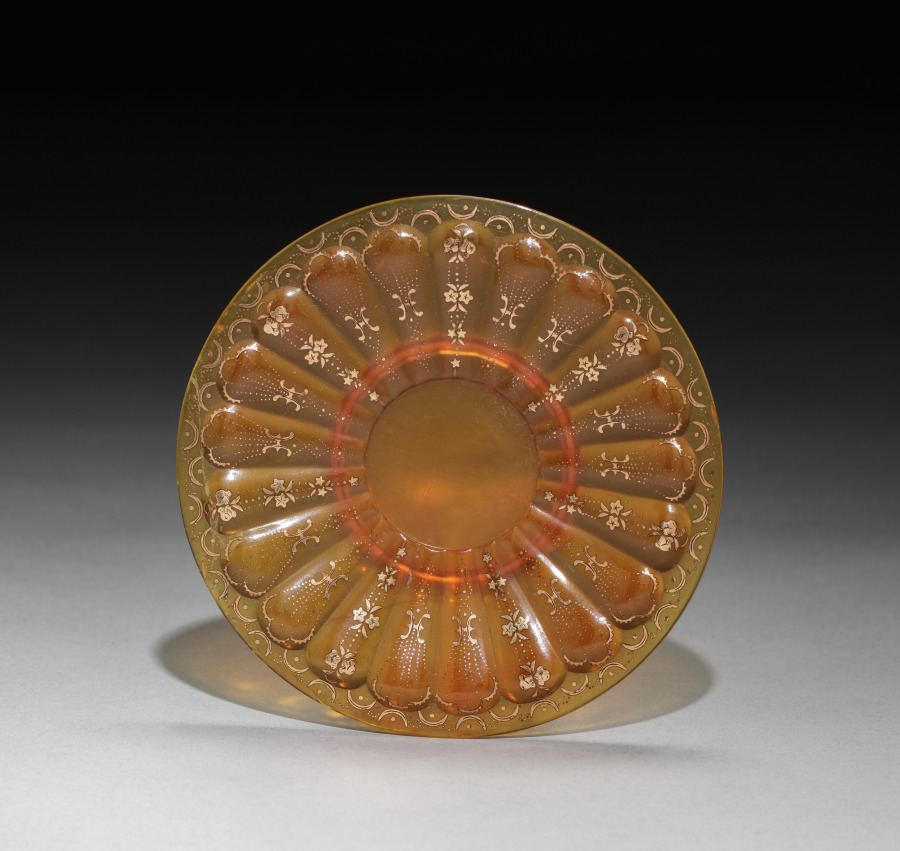 amber decorated with inlaid gold and mother-of-pearl