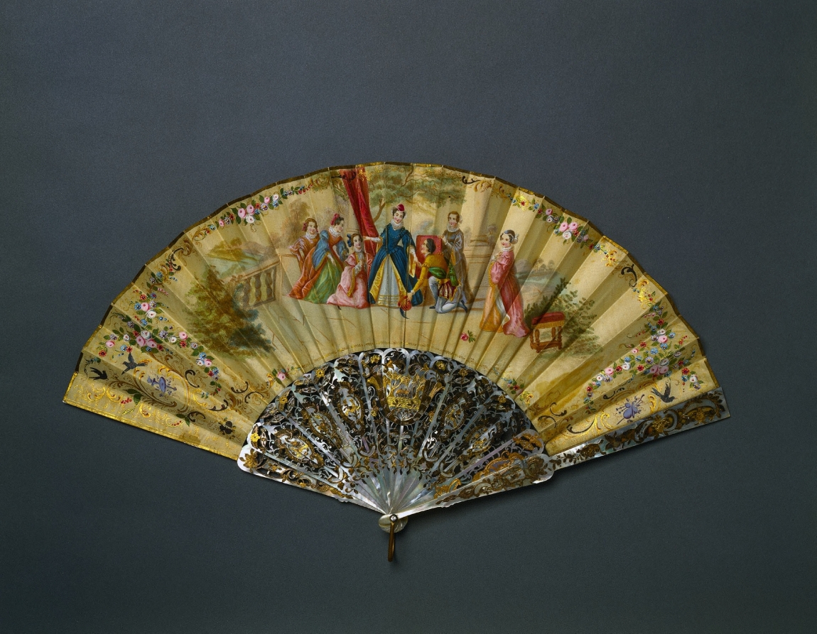 carved and gilded pearl sticks, gouache on silk leaf