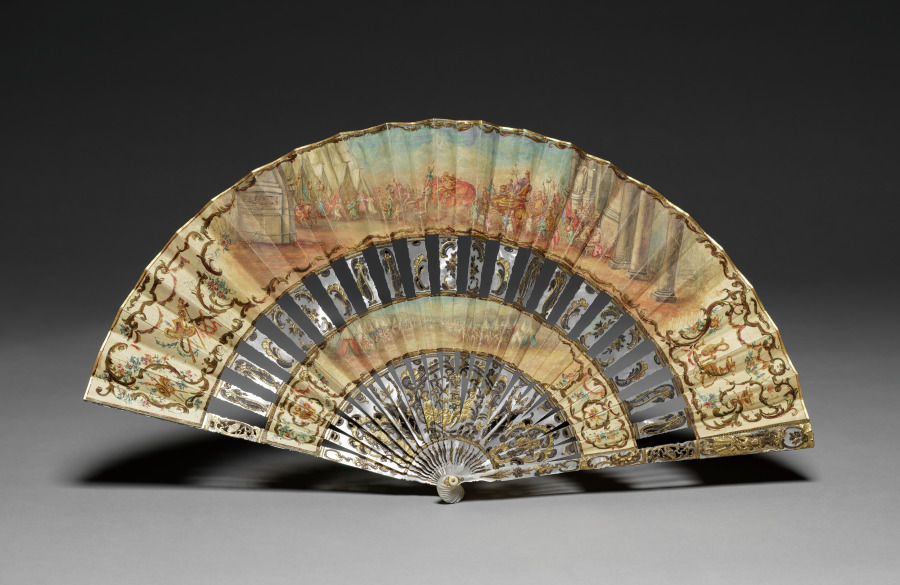 mother-of-pearl, painted paper (?), gold and silver leaf