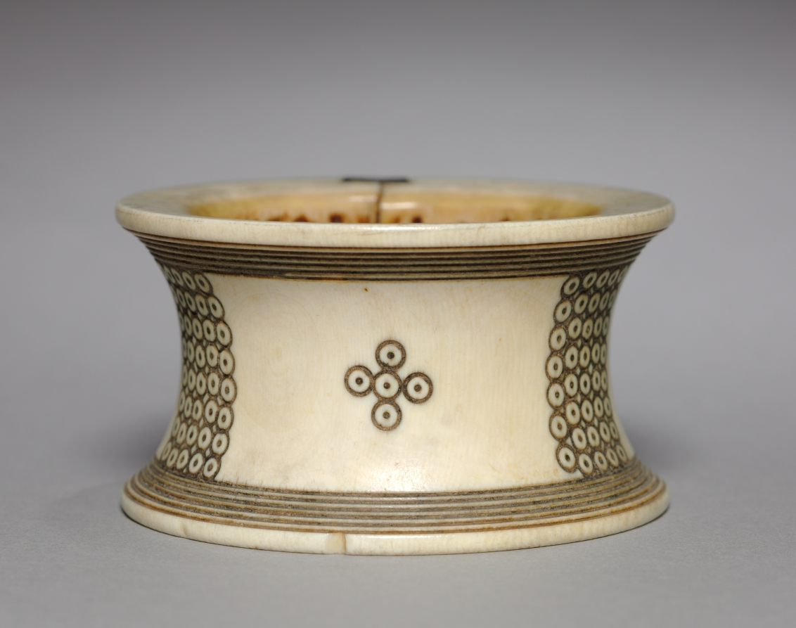 This ivory bracelet is simple, yet elegant. Note how the delicate wire repair by a Kuba artisan adds a counterpoint pattern to the original design.