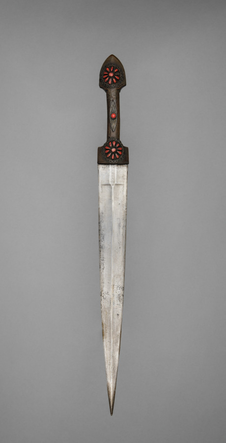 A khanjali is a dagger popular with the inhabitants of Georgia and the rest of the Caucasus since ancient times. They often have a single offset groove on each face of the blade and the shape is similar to the ancient Roman gladius and the Scottish dirk.