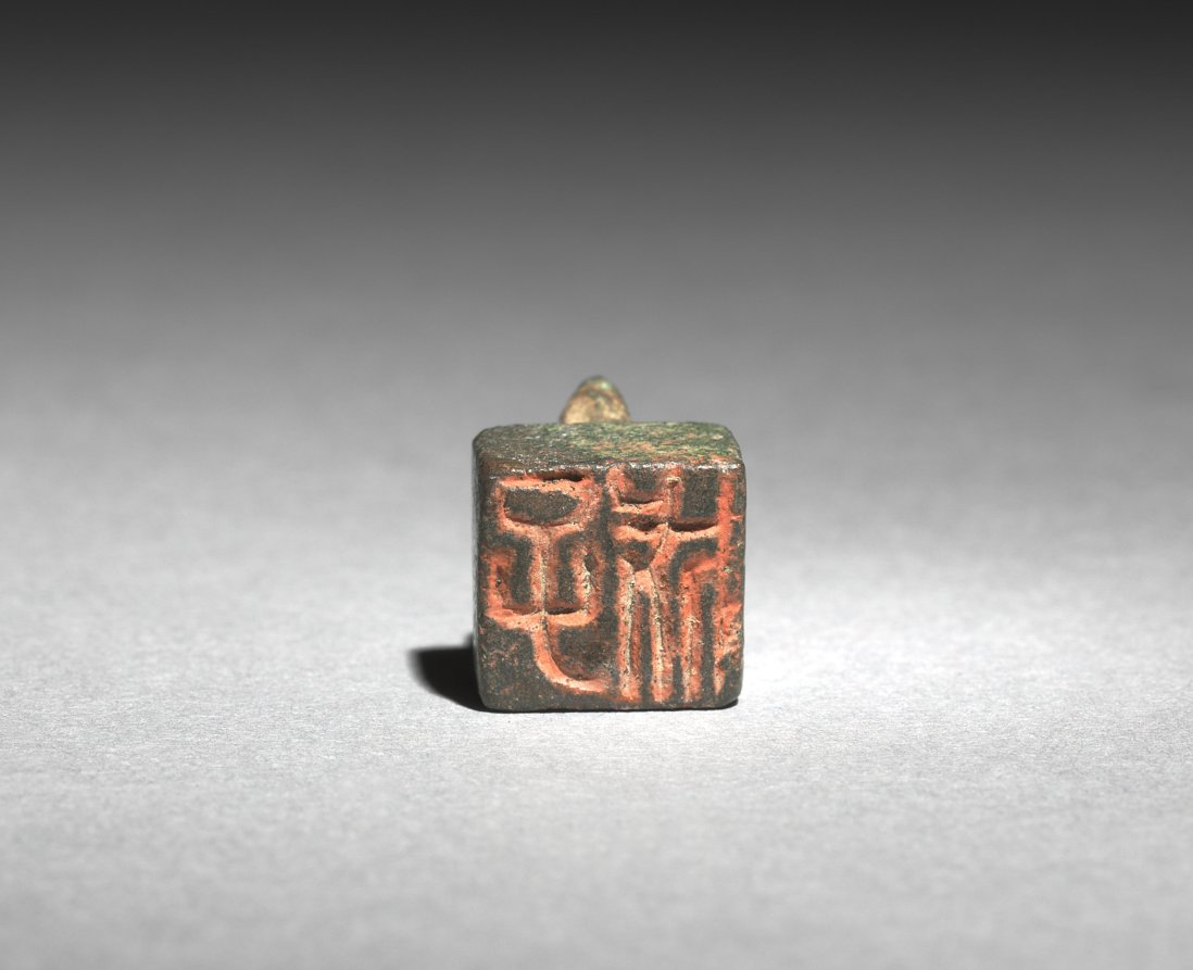 A large quantity of bronze seals were excavated from tombs of the Goryeo dynasty. This seal bears two inscribed characters:子成, meaning "generational success." The red cinnabar paste is still visible, indicating it must have been used for signing various documents while its owner was alive.