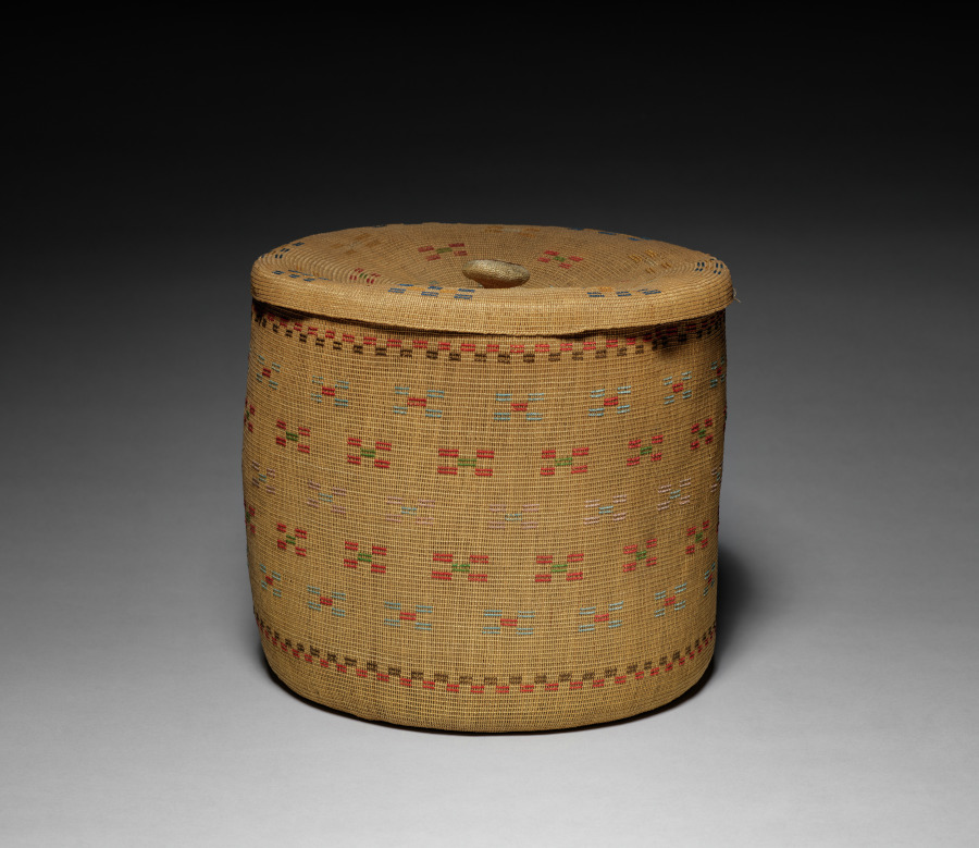 Covered Twined Cylindrical Basket by — VisualArtsDB