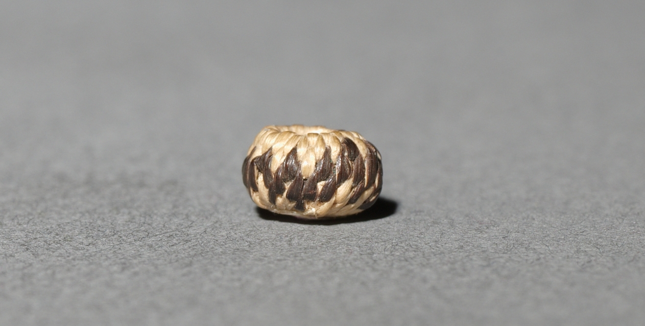 Miniature baskets were made to demonstrate the basket-maker’s virtuoso skill, and these tiny marvels seem to be no exception -- the smallest are just a few millimeters wide but still patterned. For such fine work, dexterity was required as much for preparation of materials as for weaving.