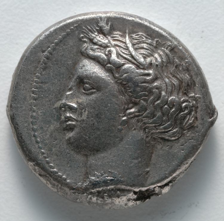 Tetradrachm: Head of Tanit-Persephone (obverse) by — VisualArtsDB