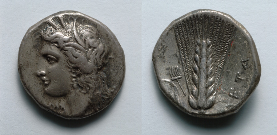 Stater: Head of Demeter (obverse); Barley (reverse) by — VisualArtsDB