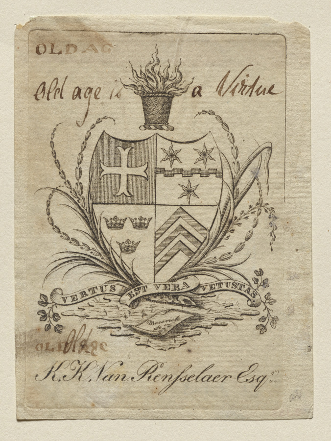Bookplate: Coat of Arms with K. K. Van Rensselaer, Esq. inscribed below