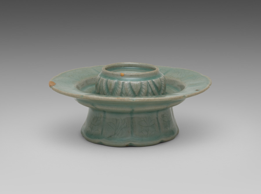 As early as the seventh century, the practice of drinking tea became an important part of elite culture in Korea. In enjoying teas, elites commissioned a variety of types of utensils and vessels including this delicate-looking cup stand, not only to make their tea-drinking experience more exciting, but also to show their refined taste.