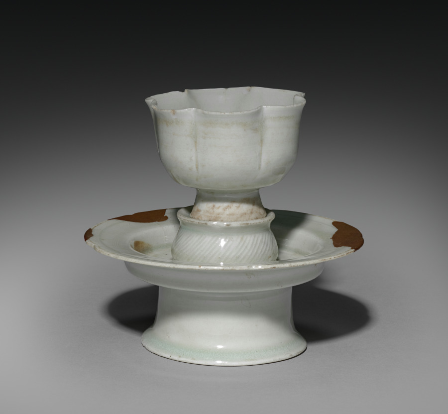As early as the seventh century, the practice of drinking tea and wine became an important part of elite culture in Korea. Elites of the Goryeo period commissioned a variety of types of utensils and vessels including this delicate-looking cup and cup stand, not only to make their drinking experience more exciting, but also to show their refined taste.