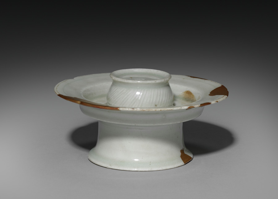 As early as the seventh century, the practice of drinking tea and wine became an important part of elite culture in Korea. Elites of the Goryeo period commissioned a variety of types of utensils and vessels including this delicate-looking cup and cup stand, not only to make their drinking experience more exciting, but also to show their refined taste.