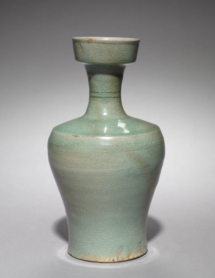 As early as the seventh century, the practice of drinking tea and wine became an important part of elite culture in Korea. Elites of the Goryeo period commissioned a variety of types of utensils and vessels including this handsome wine bottle, to make their drinking experience more exciting.