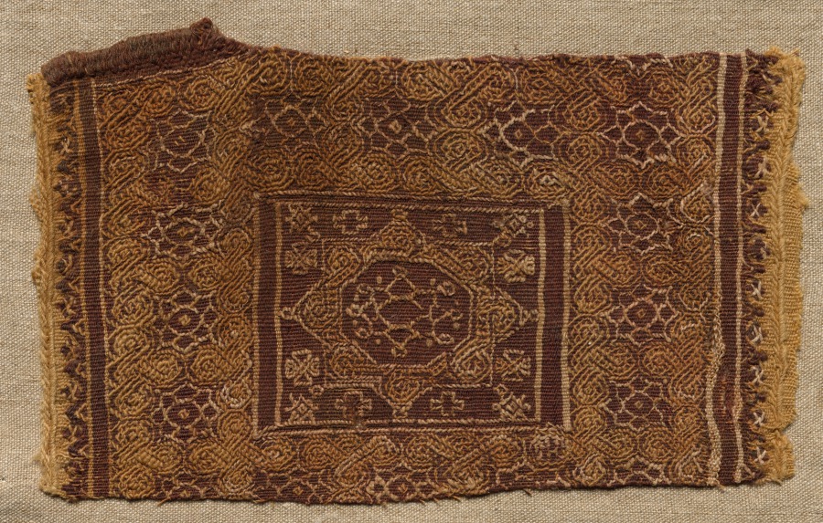 tabby weave, inwoven tapestry ornament; wool and linen