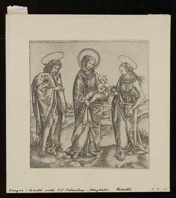 Virgin Mary and Child with St. Sebastian and Magdalen, from a group of photographs of rare prints in the British Museum by Artist: Robetta (Cristofano di Michele Martini) — VisualArtsDB