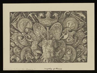 Trophy of Arms, from a group of photographs of rare prints in the British Museum by Artist: Giovanni Antonio da Bressia — VisualArtsDB