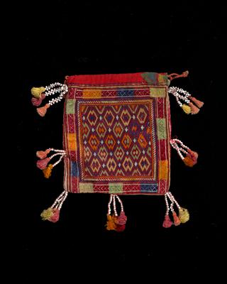 5 3/4 x 5 1/16 in. (14.61 x 12.86 cm) (pouch only, without beads or drawstring)