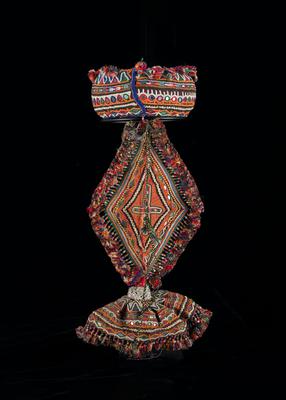 Cotton, mirrors, beads, metallic threads, plastic metallic trim