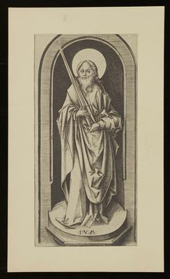 St Paul, the apostle, standing in a niche holding a sword, from a group of photographs of rare prints in the British Museum