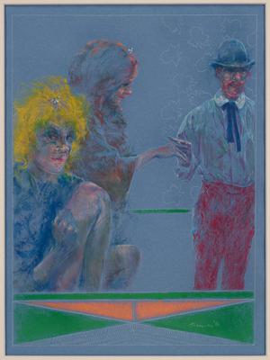 Pastel on blue paper