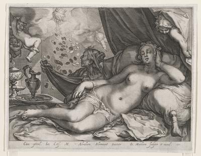 The young princess Danaë was locked in a bronze tower by her father, the king of Argos, to keep out suitors because an oracle had foretold that the king would be killed by his daughter's son. The Roman god Jupiter cleverly visited Danaë in the form of a golden shower, leaving her pregnant. Despite the king's efforts, fate prevails; his daughter gives birth to a boy, Perseus, who would accidentally slay his grandfather with a discus.