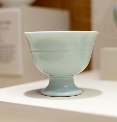 Porcelain with carved decoration under a bluish-green celadon glaze