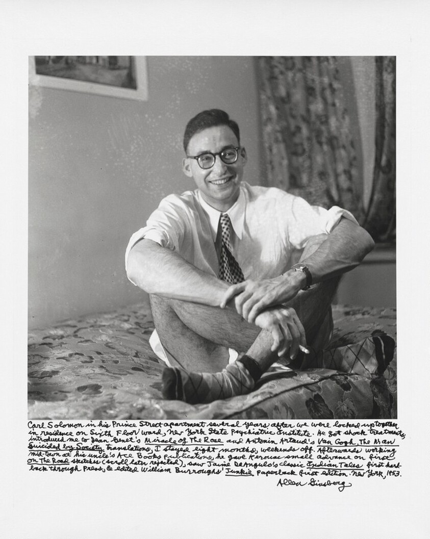 Carl Solomon in his Prince Street apartment several years after we were locked up together in residence on Sixth Floor ward, New York State Psychiatric Institute. He got shock treatments, introduced me to Jean Genet’s _Miracle of the Rose_ and Antonin Artaud’s _Van Gogh, The Man Suicided by Society_ translations, I stayed eight months, weekends off. Afterwards, working mid-town at his uncle’s Ace Books publications, he gave Kerouac small advance on first _On the Road_ sketches (scroll later rejected), saw Jaime DeAngulo’s classic _Indian Tales_ first hard-back through press, & edited William Burroughs’ _Junkie_ paperback first edition. New York, 1953. by Ginsberg, Allen, National Gallery of Art, Davis, Gary S. — VisualArtsDB