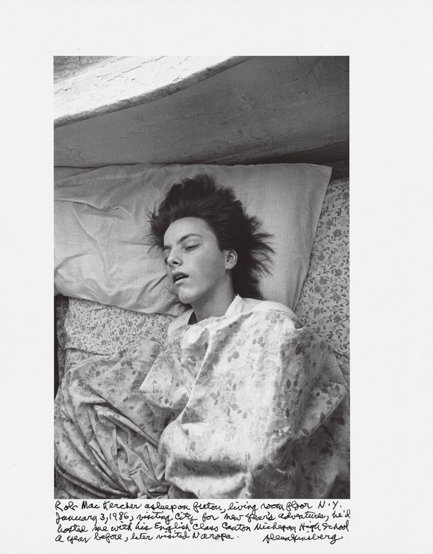 Rob MacKercher asleep on futon, living room floor N.Y. January 3, 1986, visiting city for New Year’s adventures, he’d hosted me with his English class Canton Michigan High School a year before, later visited Naropa. by Ginsberg, Allen, National Gallery of Art, Davis, Gary S. — VisualArtsDB