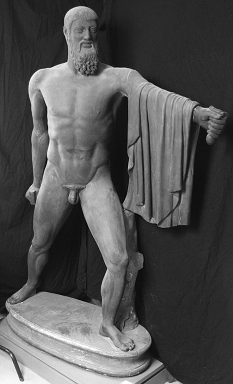 Skægget mand med kappe over fremstrakte venstre arm, tyranmorderen Aristogeiton by — VisualArtsDB