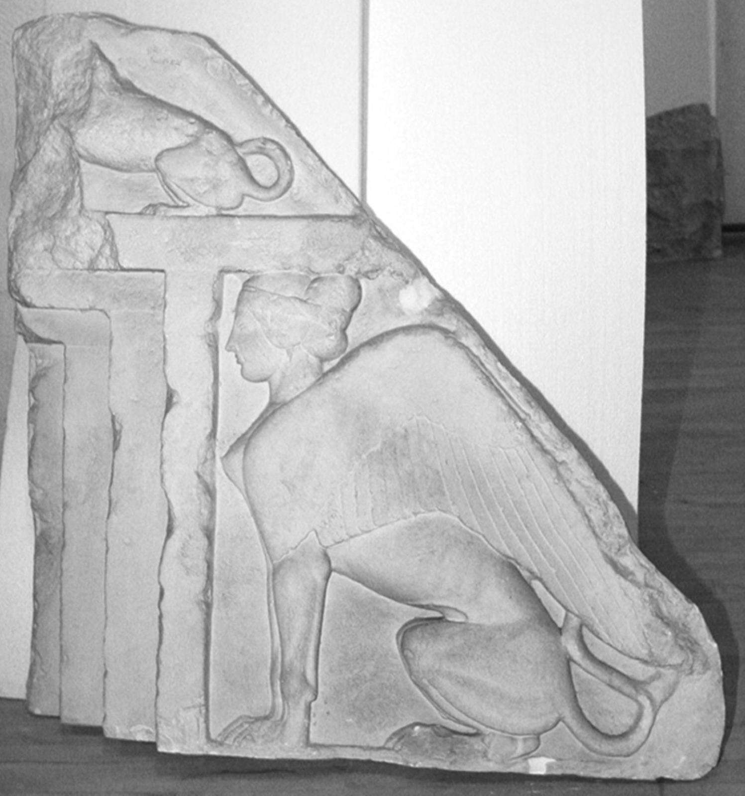 Højre del af kassettegavl med sfinks og løve by — VisualArtsDB