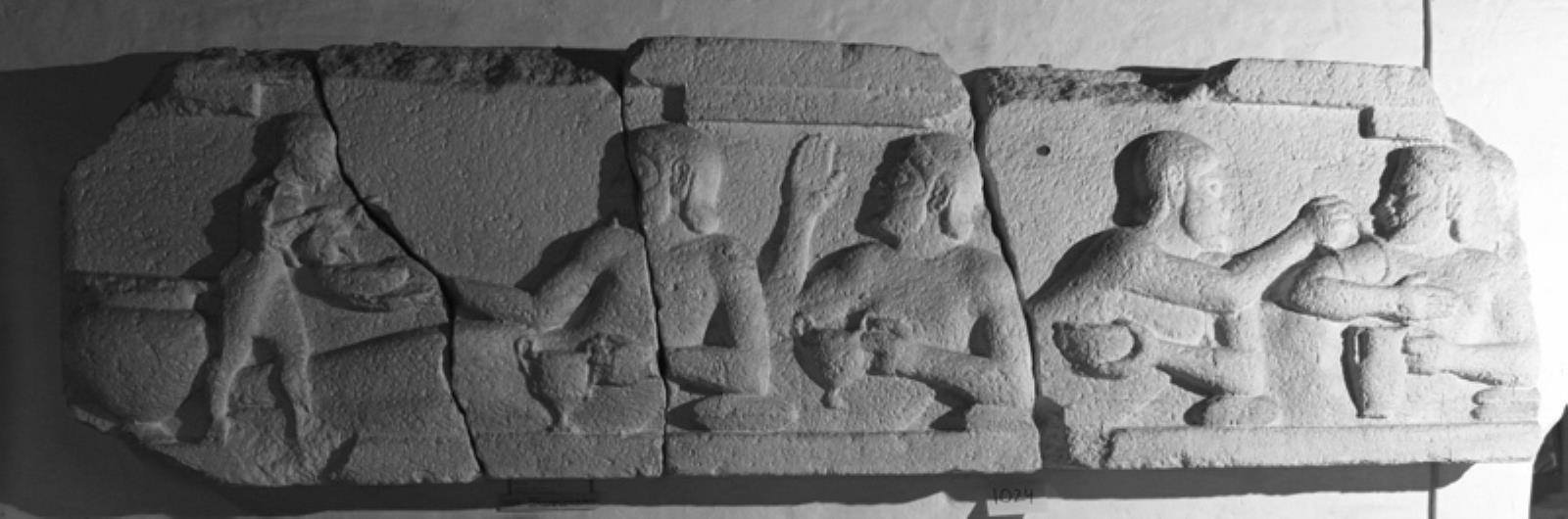 Banket med fire liggende mænd og mundskænk