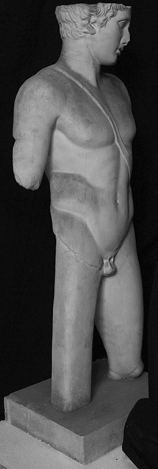 Stående nøgen ung mand med sværdrem over højre skulder, Eros ?