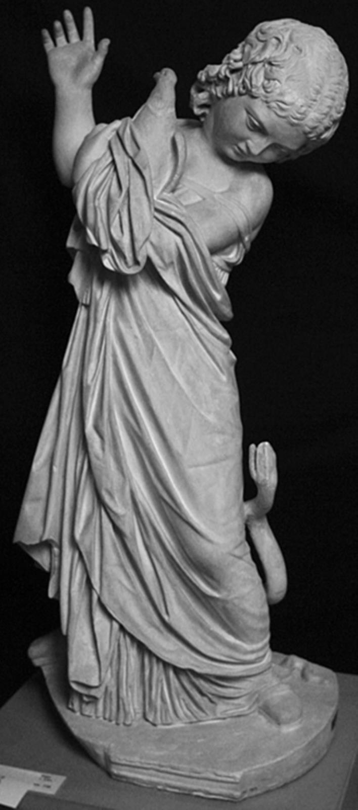 Stående pige med fugl og slange by — VisualArtsDB