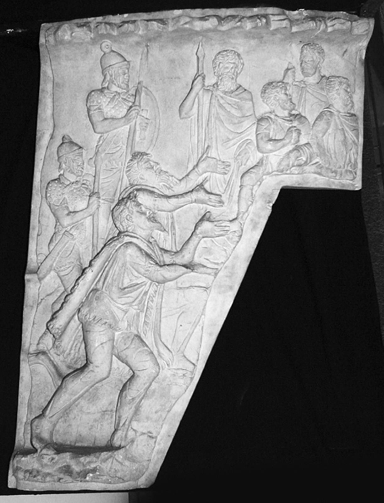 Barbarer af høj rang beder kejseren om nåde med fremstrakte hænder by — VisualArtsDB