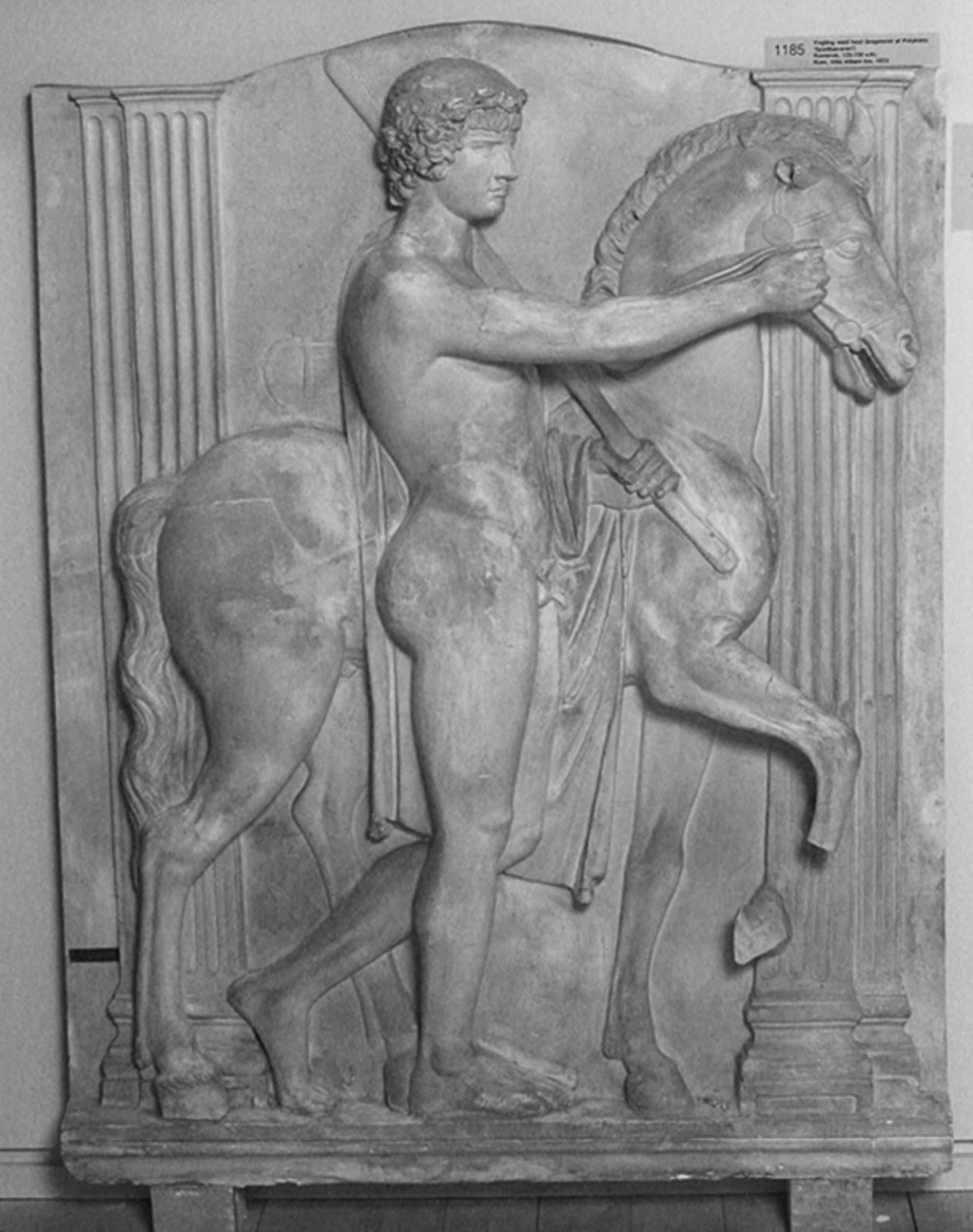 Yngling stående mod højre med hest