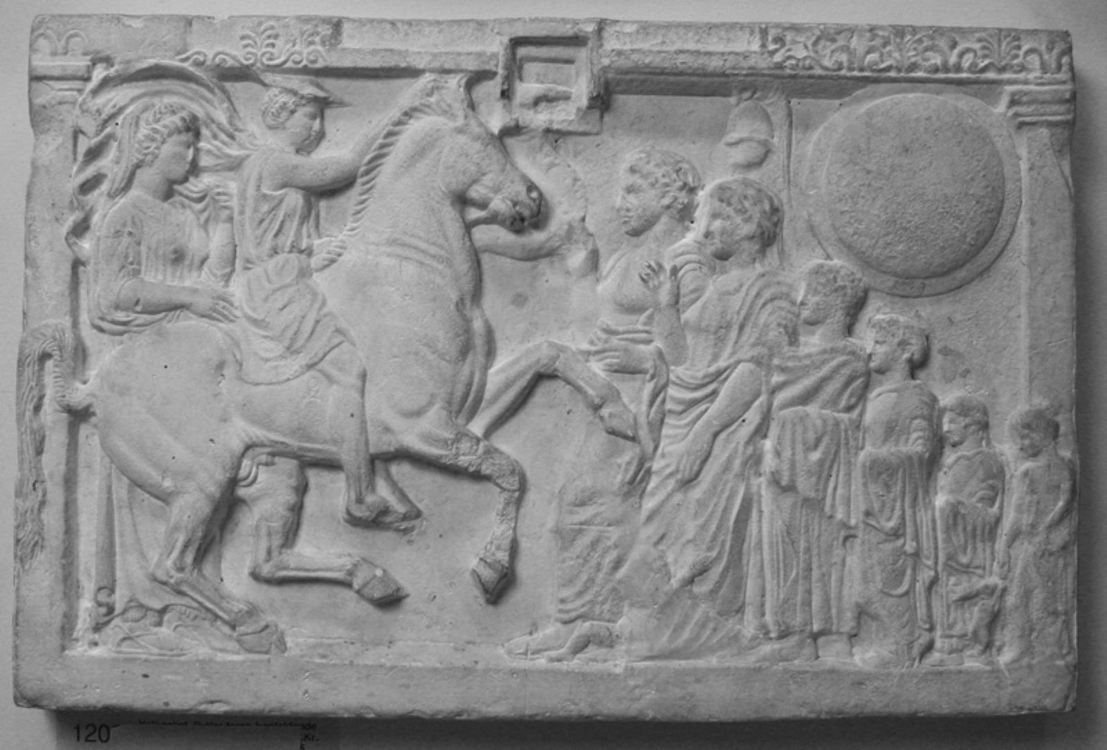 Votivrelief. Rytter foran adoranter by — VisualArtsDB