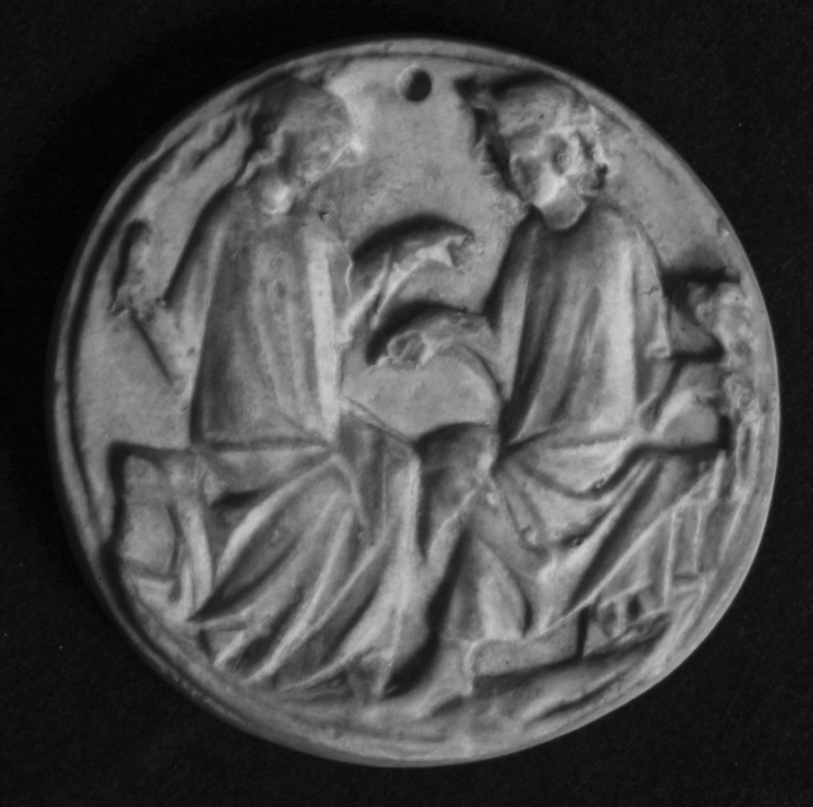Herre og dame i samtale på en bænk by — VisualArtsDB