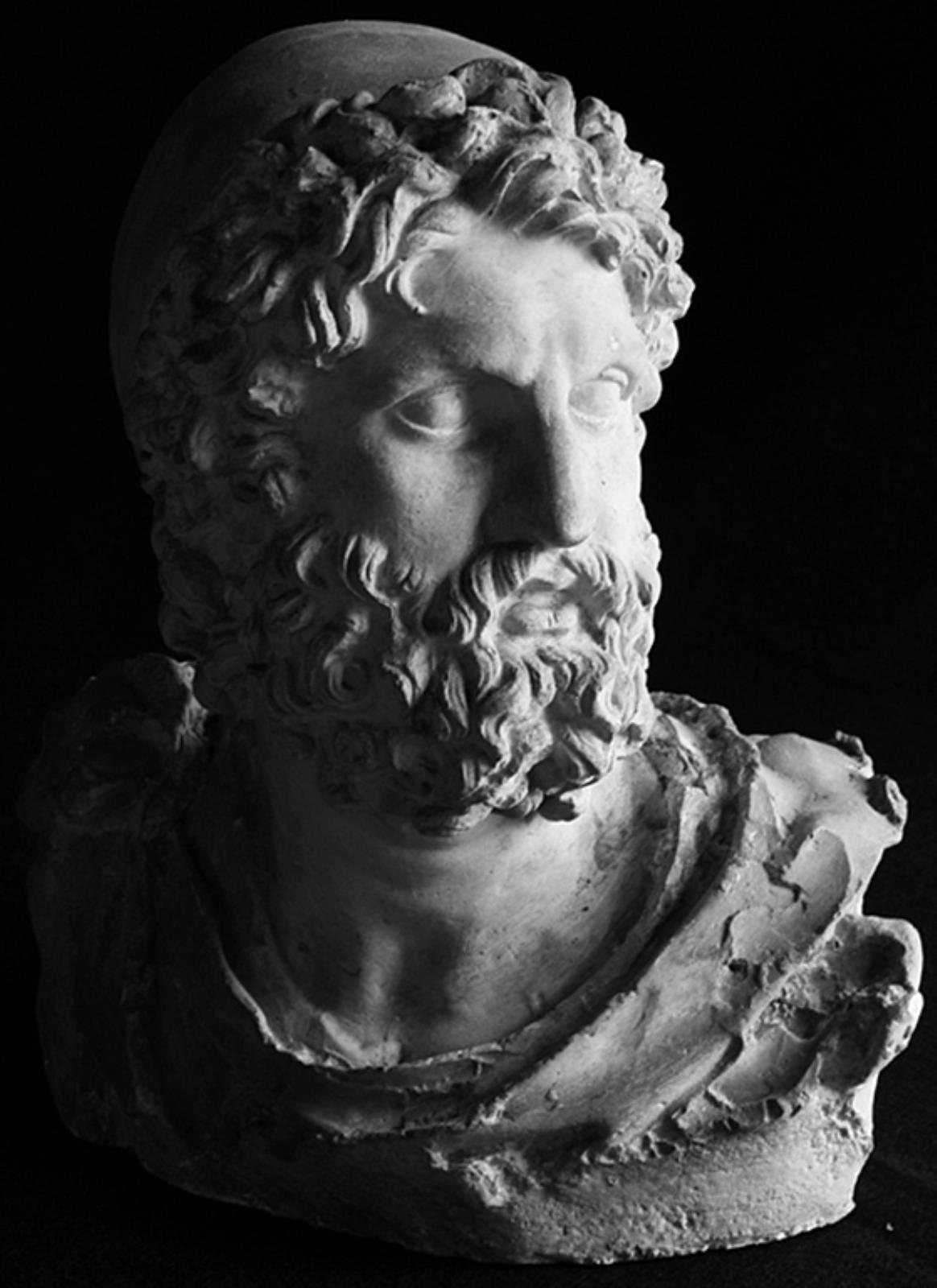 Buste fra statue. Odysseus med hovedet med pilos drejet mod sin venstre