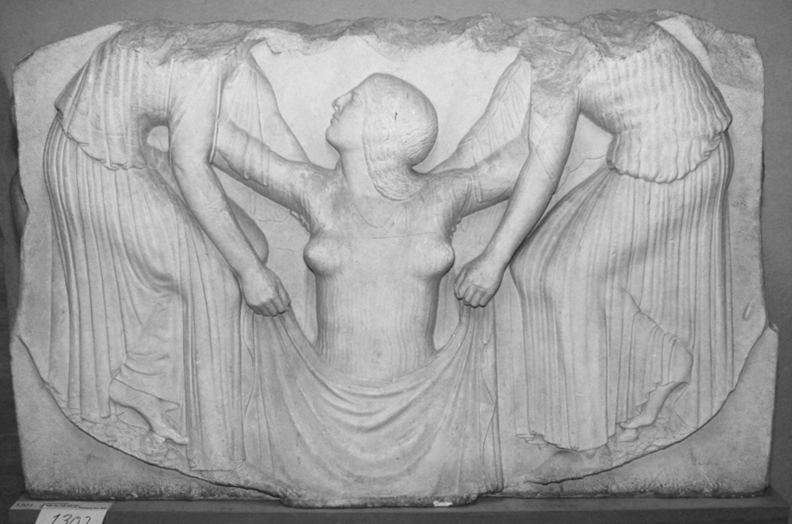 To kvinder i profil hjælper kvinde (op af badet?), Ludovisi-tronen, langside by — VisualArtsDB