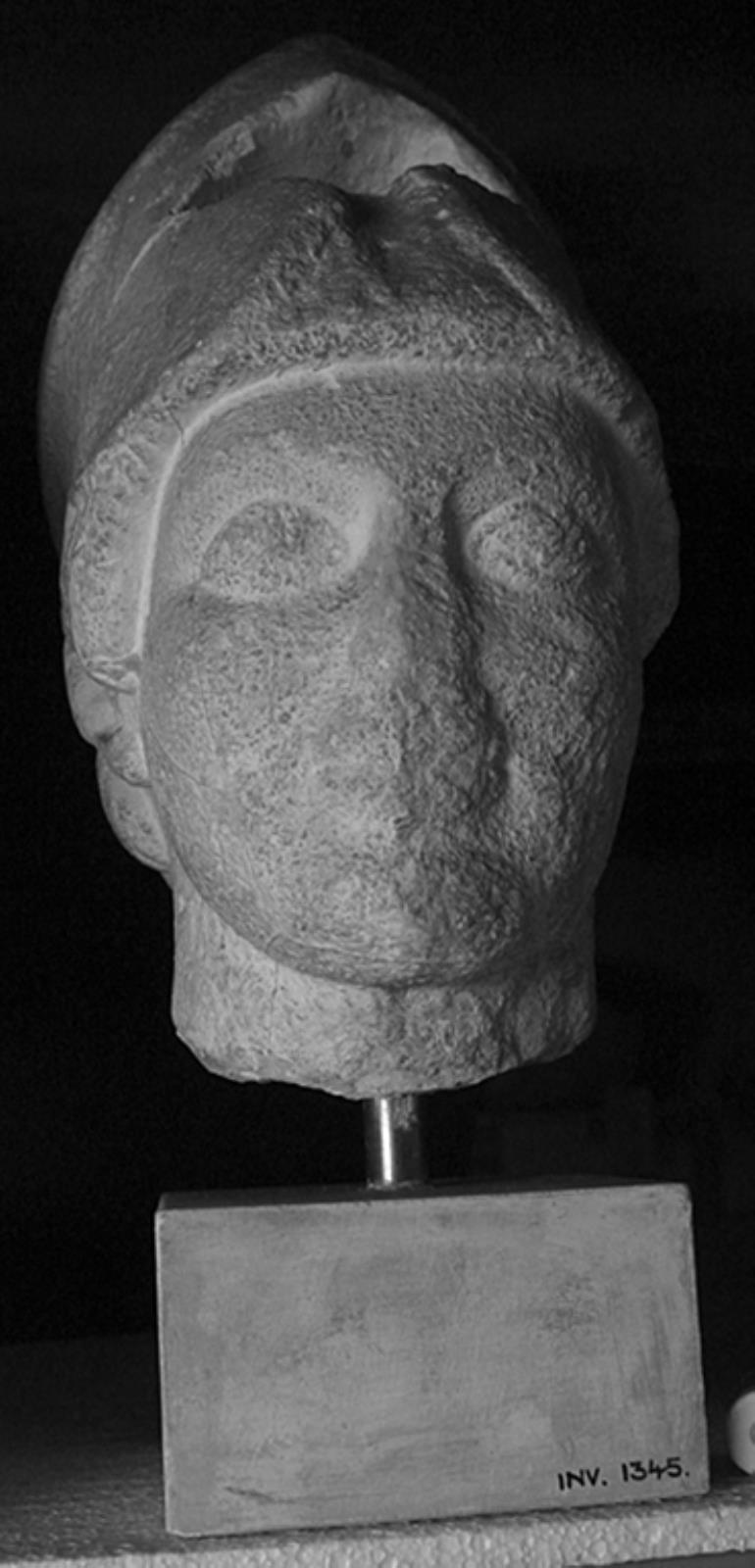 Skægløst og med korinthisk hjelm skubbet op på issen by — VisualArtsDB