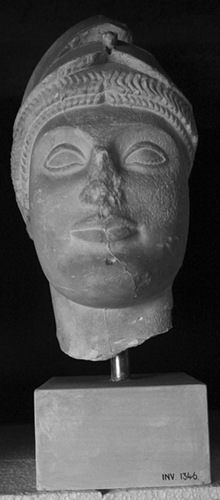 Skægløst og med korinthisk hjelm skubbet op på issen by — VisualArtsDB